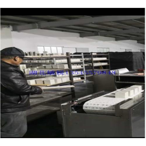 蜂窝陶瓷由于具有机械强度高、易于再生、化学稳定性好、耐热性好、孔道分布均匀等优点,具有广阔的应用前景,并被广泛应用于化工。环保、能源、冶金、电子、石油、冶炼、纺织、制药、食品机械、水泥等领域。作为吸声材料敏感元件和人工骨、齿根等材料也越来越受到人们的重视。由于多孔材料成型时含水分较多,孔隙多,且坯体内孔壁特别薄,用传统的方法因加热不均匀,极难干燥,加之这些多孔材料导热系数差,其干燥过程要求特别严格,特别是用于环保汽车等方面的蜂窝陶瓷,干燥过程控制不好,易变形,影响孔隙率及比表面积。微波干燥技术已成功地应用于多孔陶瓷的干燥,其能很容易地把坯体的水分从18%~25%降低到3%一下,降水率达到0.7~1.5kg,大大缩短干燥时间、提高成品率。我们亦把微波干燥应用于劈开砖的温坯干燥,效果亦非常明显。